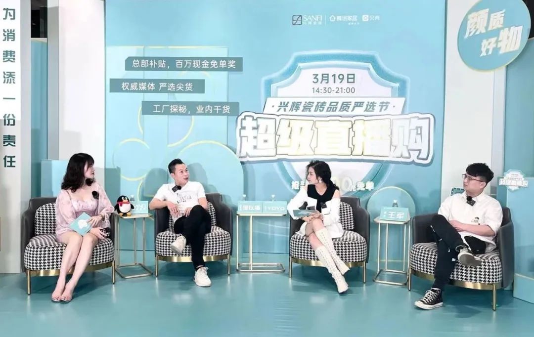 3月19日,兴辉瓷砖超级直播购在腾讯家居、抖音、视频号进行三平台联播。此次7小时不间断直播嗨购,吸引超60万人参与其中,点赞突破16万+,获客1768单!
